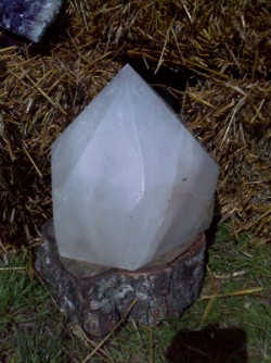 Meine Leidenschaft für die großen Kristalle begann mit diesem Stein. Ich entdeckte ihn auf einem mittelalterlichen Markt, und er nahm mir fast den Atem. So einen Kristall hatte ich bis zu dem Zeitpunkt "live" noch nicht gesehen. Er zog mich unweigerlich in seinen Bann, ich habe meine Hände auf ihn gelegt und mich durchflutete seine unglaubliche Kraft. Angesichts des Preises, der dafür zu bezahlen war, versuchte ich, ihn in der darauffolgenden Zeit zu vergessen. Nur musste ich feststellen, daß mir das nicht mal im Ansatz gelang. Immer wieder "funkte" der Kristall Bilder vor mein geistiges Auge, so daß ich etwa ein Jahr später keine andere Wahl hatte, als ihn zu erwerben. Parallel dazu fanden zwei große Amethyst-Drusen ihren Weg in meine Wohnung. Und hätte ich geahnt, welche "Kraftwesen" ich mir da ins Haus geholt hatte..... wahrscheinlich wäre meine Entscheidung, die Steine zu kaufen, anders ausgefallen...